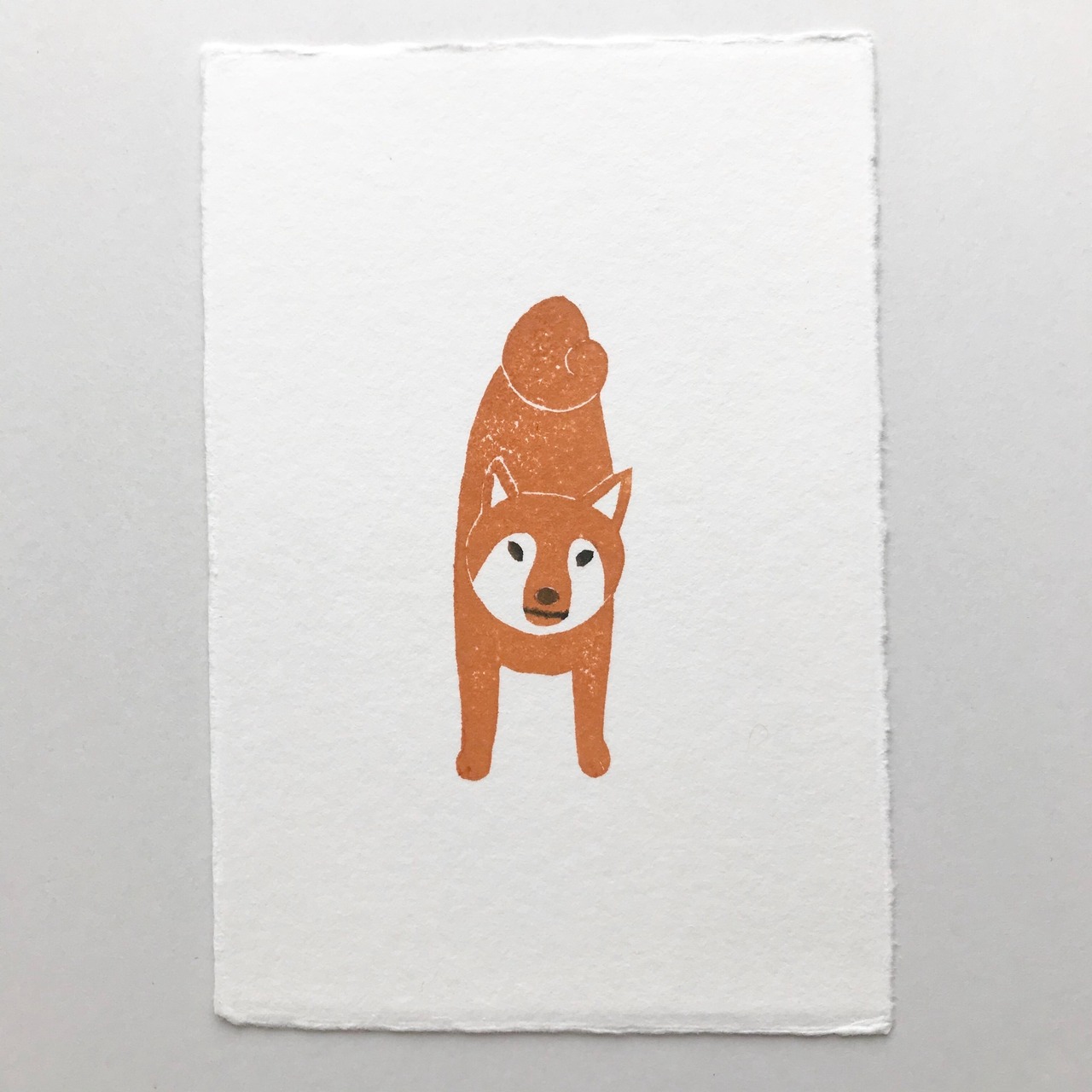 真っ白な和紙のハガキに一枚一枚ハンドメイドの消しゴムはんこを押して作っています。