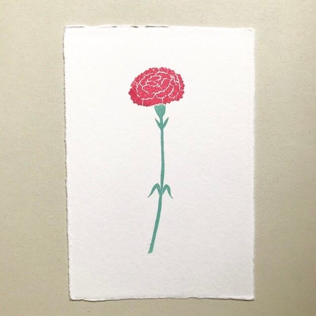 真っ白な和紙のハガキに一枚一枚ハンドメイドの消しゴムはんこを押して作っています。