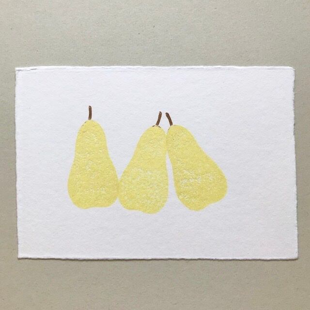 真っ白な和紙のハガキに一枚一枚ハンドメイドの消しゴムはんこを押して作っています。