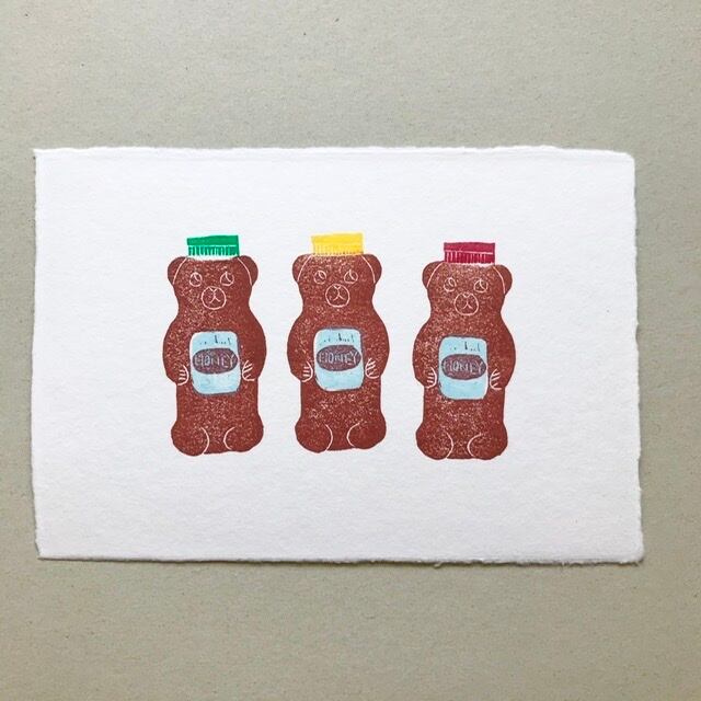 真っ白な和紙のハガキに一枚一枚ハンドメイドの消しゴムはんこを押して作っています。