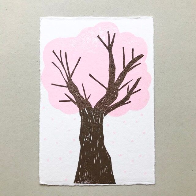 真っ白な和紙のハガキに一枚一枚ハンドメイドの消しゴムはんこを押して作っています。