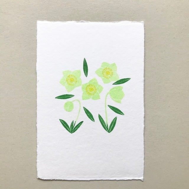 真っ白な和紙のハガキに一枚一枚ハンドメイドの消しゴムはんこを押して作っています。