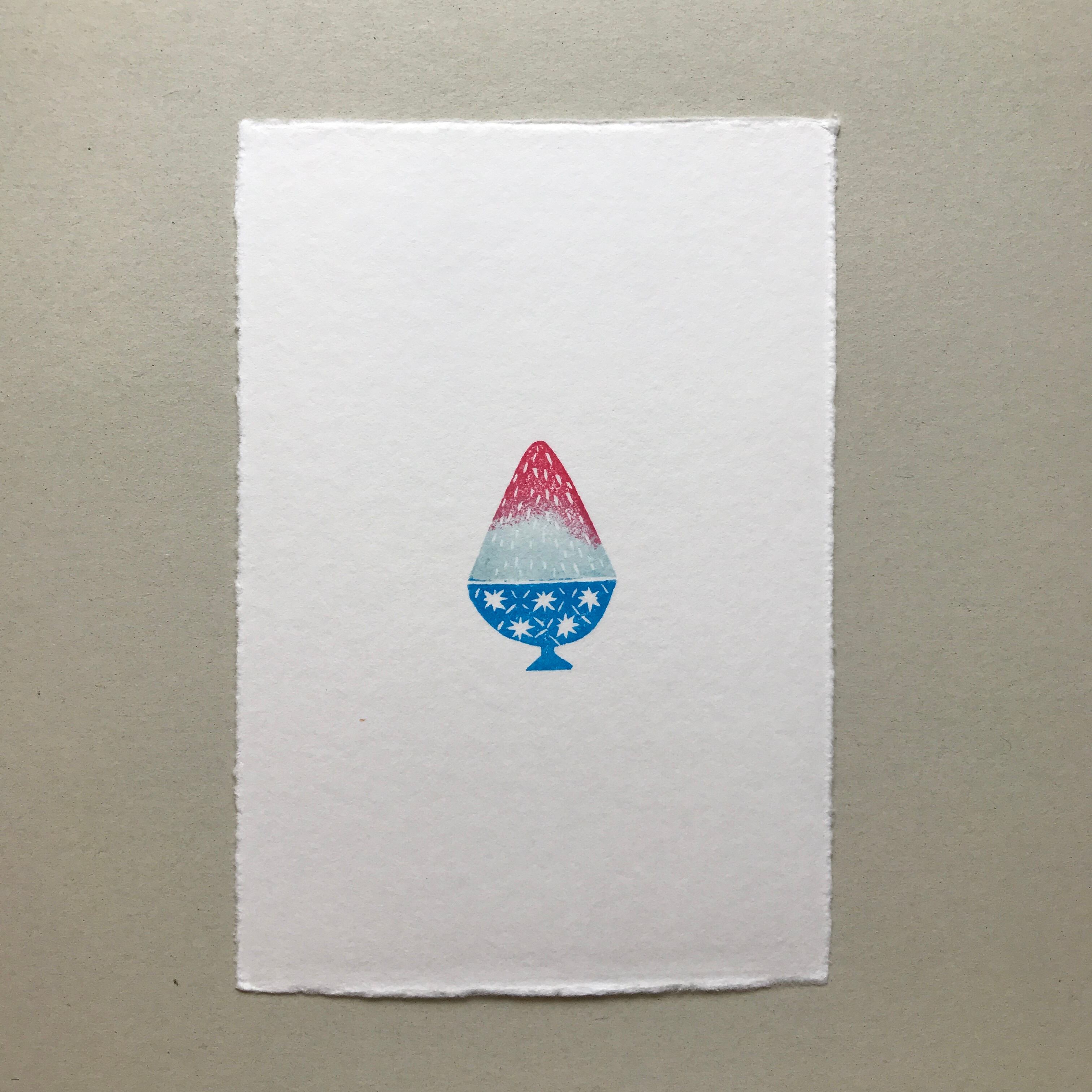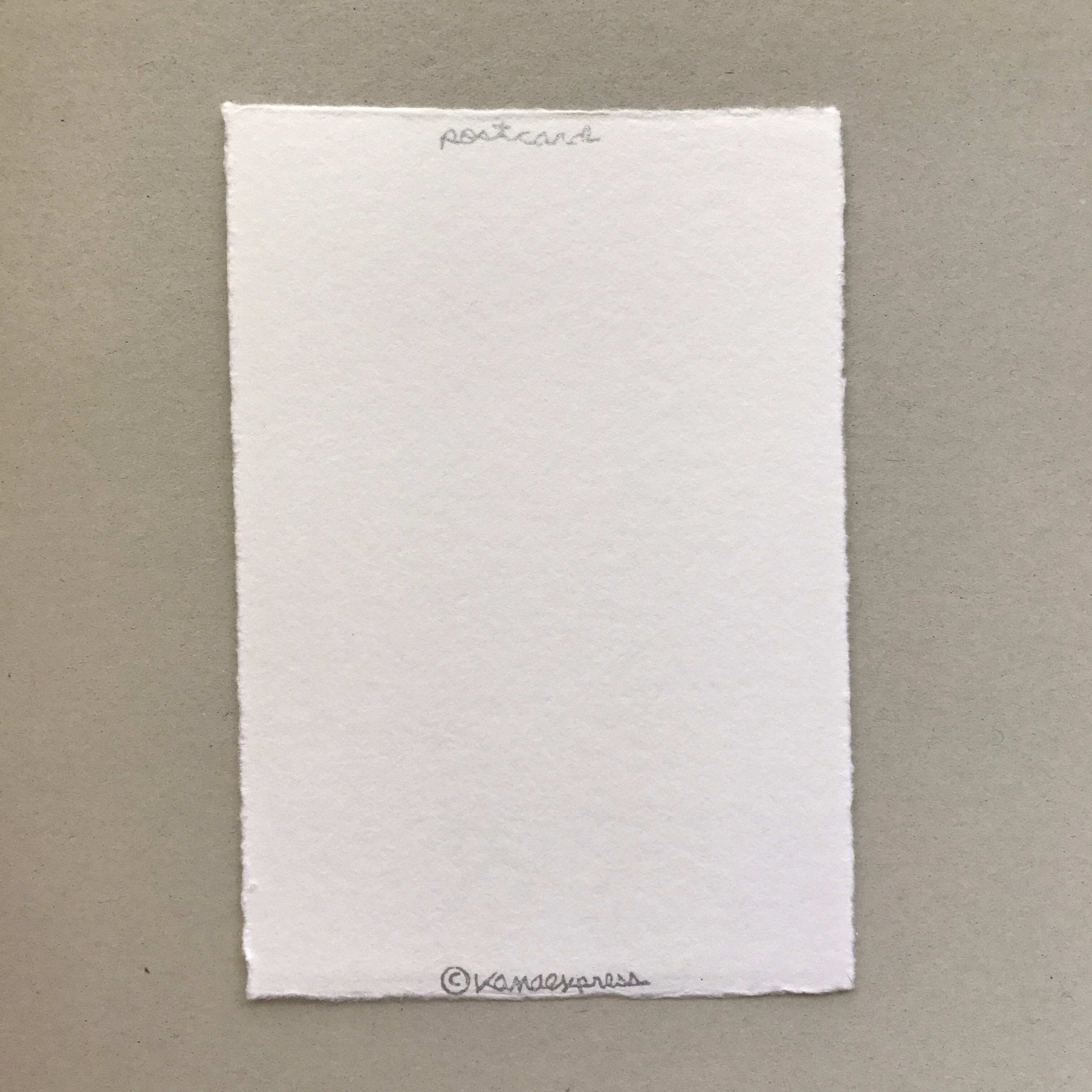 真っ白な和紙のハガキに一枚一枚ハンドメイドの消しゴムはんこを押して作っています。
