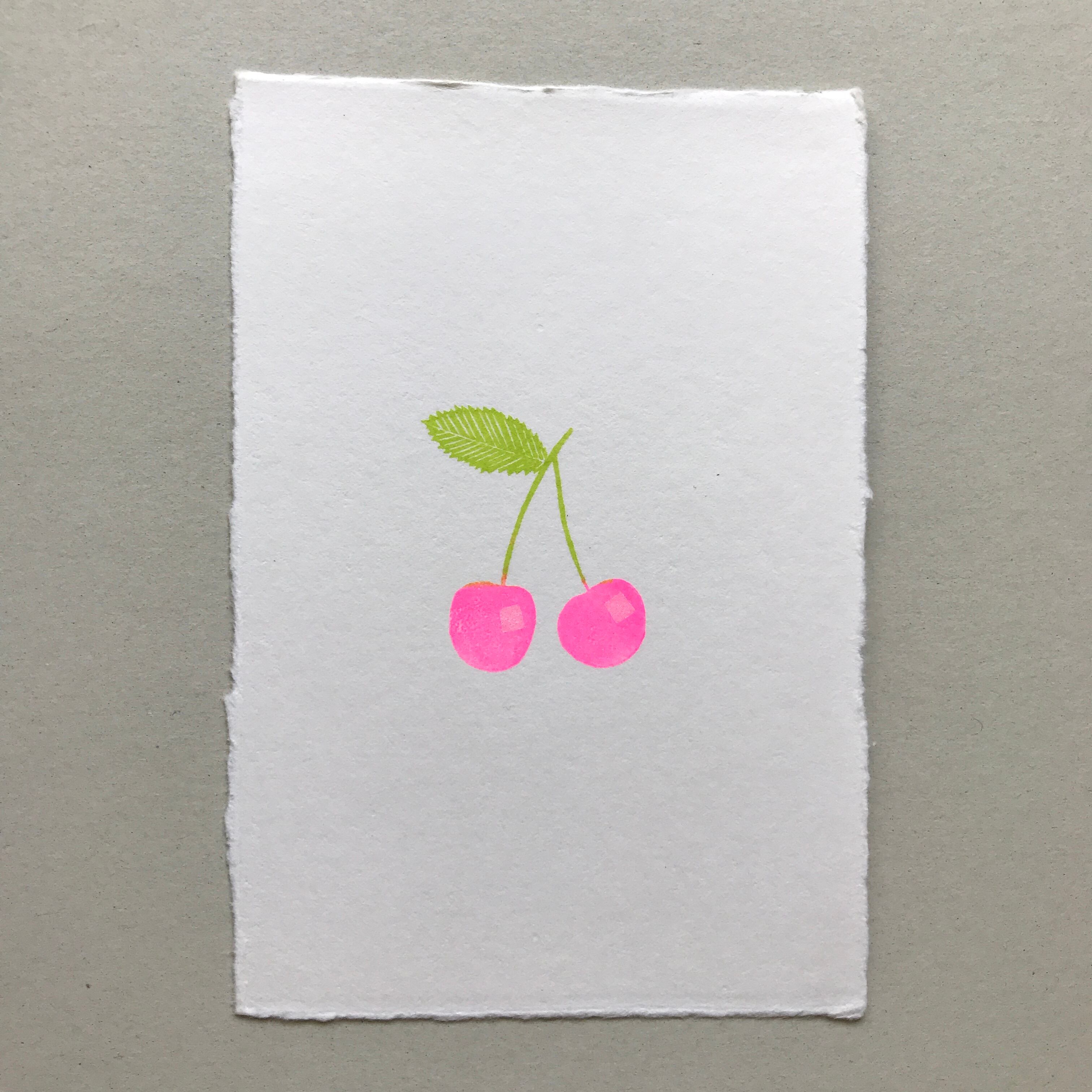真っ白な和紙のハガキに一枚一枚ハンドメイドの消しゴムはんこを押して作っています。